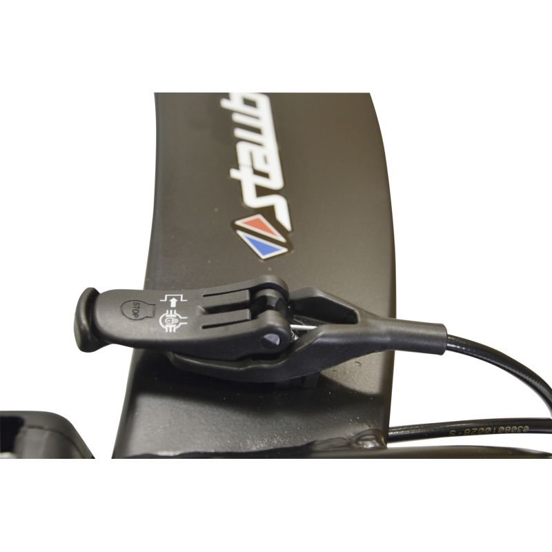 - Guidon réglable en hauteur et en déport à l’aide d’une seule poignée.