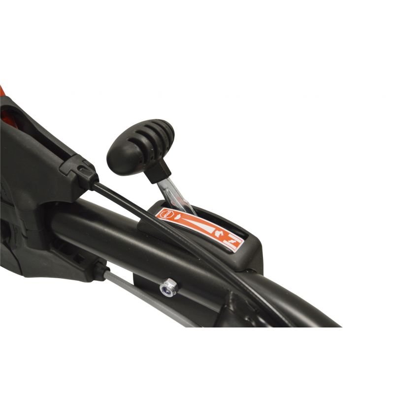 - Les roues sont traitées anti‐crevaison, et pour votre sécurité une poignée type « homme mort » présente au guidon, assure l’arrêt moteur.